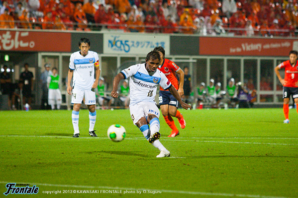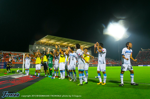 後半、大宮に攻勢をかけられ勝ち越されるものの、相手の一瞬のスキを突いて同点に。終盤も大宮に押し込まれながらもGK西部を中心に粘り強く守り、ラストプレーでレナトがPKを決め、劇的な展開でアウェイで勝利を挙げた。