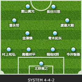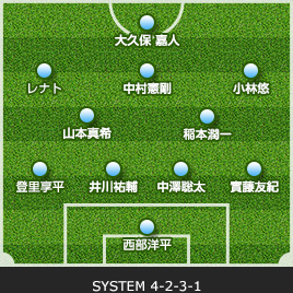| 西部 洋平 | 21 | 0 | 0 | 0 | GK | 0 | 0 | 0 | 1 | 北野 貴之 |