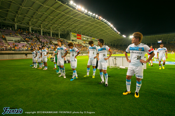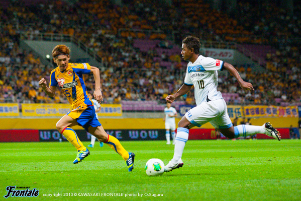 46分、フロンターレの攻撃。中盤で早いテンポでつなぎ左サイドから抜け出したレナトが低いボールを送るがDFにクリアされる。47分、左サイドから崩しをかけ、抜け出したレナトが折り返し。こぼれ球にアランが詰めるが惜しくもゴールネットを揺らせず。48分、仙台の攻撃。中盤でボールを奪われカウンターを狙われるが、GK西部が飛び出しクリア。50分、山本がミドルシュートを放つがGKにセーブされる。52分、仙台の攻撃。左サイドから崩しをかけられクロスを入れられるがGK西部がキャッチ。53分、フロンターレの攻撃。中村のスルーパスにアランが抜け出すがオフサイドの判定。54分、山本がドリブルでペナルティエリア内に入り込みシュートを放つがDFにブロックされる。56分、相手陣内でボールを奪い中村がスルーパス。こぼれ球を大久保がフリーで受けるが、シュートは惜しくもポストに当たって外れる。58分、仙台のプレッシャーをかわして速攻へ。右サイドのアランの折り返しを受けたレナトが左足を振り抜くが、シュートは惜しくもクロスバーに当たって外れる。60分、前線で大久保がキープするがシュートに持ち込めず。61分、スルーパスにアランが抜け出すが、惜しくもオフサイドの判定。