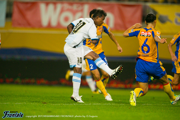 - 自分だけでなく、チーム全体が残念。たくさんのチャンスを作れたが、ゴール出来なかった。残念だが、次はホームなのでネガティブな気持ちを持たずに帰りたいと思う。相手はすごく後ろにポジションを取っていて、固めていた。そうされるとなかなかゴールするのは難しい。その中で辛抱強くやらないとダメ。ゴールは、憲剛から(中村憲剛)のボールをトラップした瞬間に前を向けた。スペースはなかったが、足を振り切れた。ゴールは嬉しいが、勝たないと意味が無い。クロスバーにポストにと、チャンスはたくさん作れたし、決定機はあった。神様がチャンスを与えてくれたが、僕達がそれを外してしまったのだと思う。いい練習をして、頑張りたい。