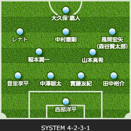 | GK/杉山 力裕 | 1 | 0 | SUB | 0 | 1 | GK/桜井 繁 | ||||