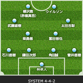 | MF/森谷 賢太郎 | 19 | 0 | 0 | 0 | 13 | FW/柳沢 敦 | ||||