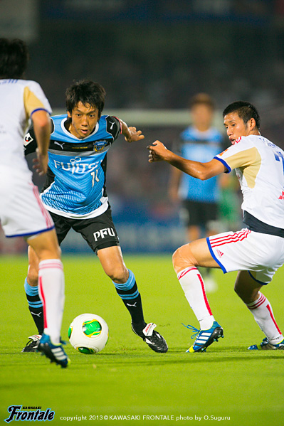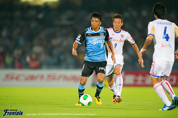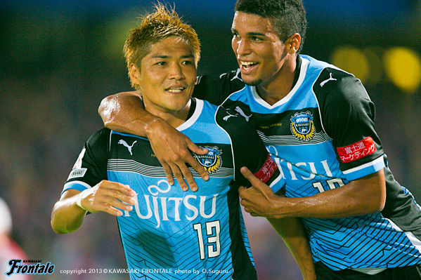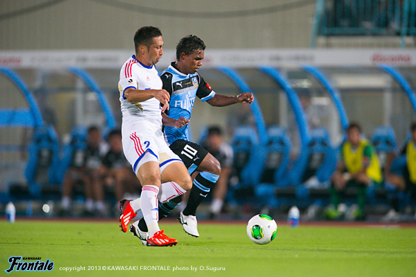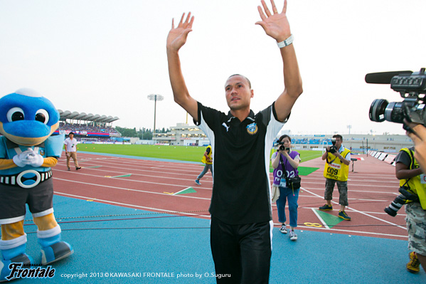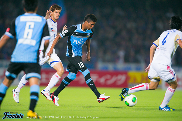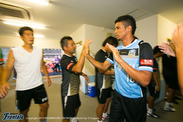 - たくさんのサポーターがいるなかでアシストにつながるパスを出すことができた。ホームでのデビュー戦ということで、まず冷静にプレーすることを意識して、結果だけを追い求めてプレーした。ドローというのは残念だが、ケンゴ(中村憲剛)のシュートがポストに当たってしまったり、惜しいチャンスが何本かあった。自分としてはできるだけ前で勝負をしかけることをイメージして、いまできることを精一杯やった。戦術的な部分ではブラジル時代も同じ役割をやっていたので、難しさは感じていない。守備では自分のポジションに戻ることを心がけた。日本の夏はすごく湿度が高い。空気を探しながら吸っているような状態だった。今日は得点に絡むことができたが、まだまだやらなければいけないことはある。チームの勝利に貢献できるよう、日々のトレーニングからやっていきたい。