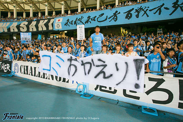 - スタンドにいる皆さんがとてもあたたかく迎えてくれて幸せな気持ちだったし、すごく感動した。フロンターレのサポーターの皆さんが自分を家族として受け入れてくれているのを感じて感謝の気持ちでいっぱい。本当に感謝している。