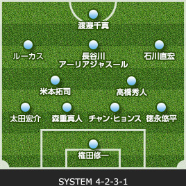 | 西部 洋平 | 21 | 0 | 0 | 0 | GK | 0 | 0 | 0 | 20 | 権田 修一 |