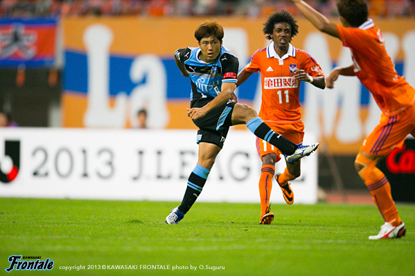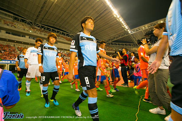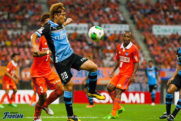 - 何試合か見ていて、フロンターレは足元足元のプレーが多いので、それと実際にやられてしまったのですが、憲剛(中村憲剛)、大久保(大久保嘉人)あたりに時間を与えてしまうと、非常に危険なプレーをしてくる。前からどんどん相手に時間を与えないようにしてこうということでやりましたけど、90 分を通してある程度やれたと思っています。