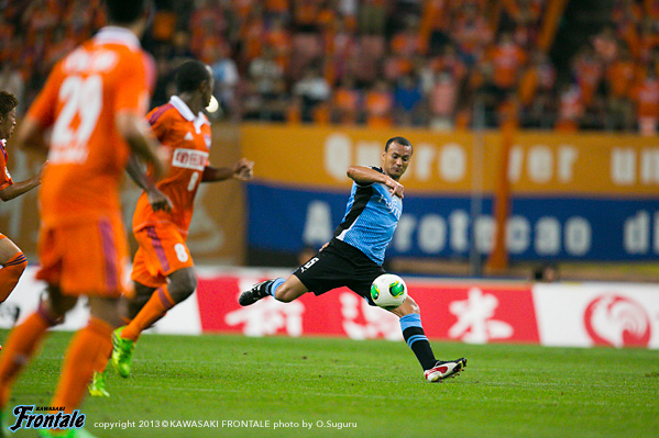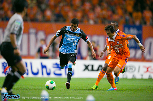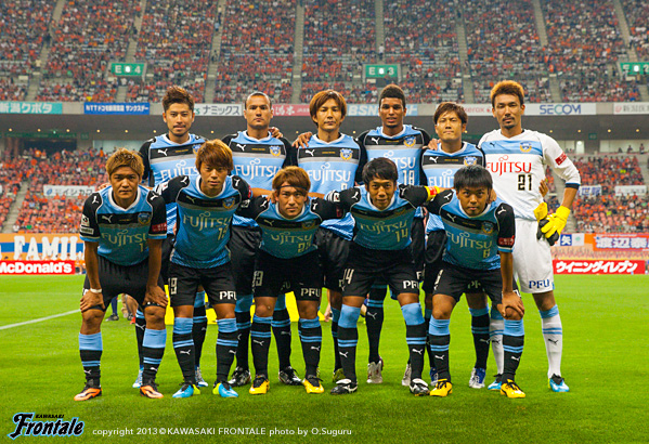 フロンターレのスターティングメンバーは、トップに大久保、その下に中村、左サイドに登里、右にアラン、中盤センターは山本と森谷のコンビ、最終ラインは小宮山-伊藤-ジェシ-田中裕、GK西部。立ち上がり4分、フロンターレの攻撃。ボールをつないで大久保が中盤から前線にパスを送るが、アランには通らず。5分、パスをつないでアランが右にはたき、中村がドリブルからシュート性のボールを入れるがDFに当たりGKにキャッチされる。5分、新潟の攻撃。直後に反撃を浴びレオシルバにシュートを打たれるが、ジェシがブロック。6分、左コーナーキックの場面。金珍洙のボールを舞行龍にヘッドで合わせられるが、ボールは大きく外れる。8分、フロンターレの攻撃。中盤やや右サイドからのフリーキック。中村がボールを入れるがアランはうまく合わせられず。8分、新潟の攻撃。ロングボールから右サイド裏のスペースを突かれ、折り返しからつながれ三門にシュートを打たれるが、ここはGK西部がキャッチ。11分、フロンターレの攻撃。左サイド裏のスペースを突いて登里がドリブル突破。深い位置から入り込みシュートを放つが、惜しくもGKにセーブされる。12分、左コーナーキック場面。中村のボールを伊藤がすらして田中裕が飛び込むが、ヘディングは惜しくもタイミングが合わず。13分、新潟の攻撃。パスをつながれ川又にボールを入れられるが、田中裕が絞って対応。14分、自陣でボールを入れられスルーパスを狙われるが、GK西部が飛び出しキャッチ。17分、カウンターからセカンドボールを拾われシュートに持ち込まれるが、ここもGK西部がセーブ。18分、連左コーナーキックの場面。金珍洙のボールからセカンドボールを拾われるが、守備陣が落ち着いて対応。19分、中盤でボールをつながれ連続してシュートに持ち込まれるが、伊藤、小宮山がシュートブロック。21分、ボールをつながれ右サイドの藤田にクロスを入れられるがGK西部がキャッチ。