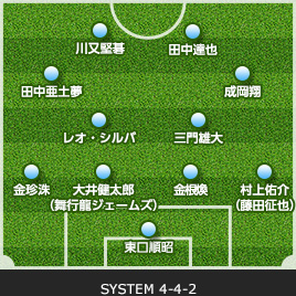 | 19 森谷 賢太郎 | → | 15 實藤 友紀 | 79 | 59 | 16 岡本 英也 | ← | 9 田中 達也 | |