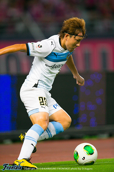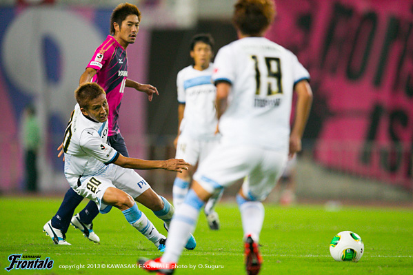 フロンターレのスターティングメンバーは、トップに大久保、その下に中村、ワイドは左に登里、右に森谷、中盤センターは稲本と山本のコンビ、最終ラインは小宮山-井川-ジェシ-田中裕、GK西部。立ち上がり1分、フロンターレの攻撃。相手陣内でボールを奪い、パスをつないで森谷がスルーパスを狙うがゴール前には通らず。2分、C大阪の攻撃。中盤でのルーズボールに反応した山口にロングシュートを狙われるが、GK西部がキャッチ。3分、セカンドボールを拾われ押し込まれるが、柿谷のシュートはジェシがブロック。さらに押し込まれ右サイドから折り返されるGK西部がキャッチ。6分、フロンターレの攻撃。相手陣内でボールを奪い返し山本がミドルシュートを狙うが枠には飛ばず。7分、C大阪の攻撃。ペナルティエリア右前からのフリーキックの場面。エジノのシュートは大きく外れる。11分、フロンターレの攻撃。相手陣内でパスをつなぎ大久保がミドルシュートを放つが枠を外れる。12分、C大阪の攻撃。相手陣内でパスカットされ、柿谷にミドルシュートを打たれるがゴール左に外れる。14分、フロンターレの攻撃。C大阪の攻勢をしのいでカウンターを狙うが、ラストパスにつながらず。18分にもパスを丁寧につないで崩しを狙うが、フィニッシュに持ち込めず。20分、フロンターレの攻撃。中盤でパスをつないで大久保が前線にボールを送るが、飛び出した登里はファールで止められる。21分、ペナルティエリア左前からのフリーキック。中村のボールはDFにクリアされる。23分、C大阪の攻撃。エジノのドリブル突破は守備陣で対応。ジェシがクリア。26分、フロンターレの攻撃。パスを細かくつなぎ右サイド深い位置に抜け出した中村が決定的な折り返しを入れるが、惜しくもGKにキャッチされる。27分、C大阪の攻撃。左サイド新井場の低い折り返しは井川がクリア。28分、フロンターレの攻撃。中村の縦パスに登里が左サイドから抜け出すが折り返せず。