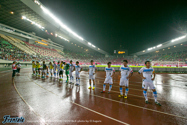70分、小宮山が左サイドからドリブルをしかけて突破するが、折り返しを入れられず。72分、C大阪の攻撃。杉本のドリブル突破から押し込まれるが田中裕がクリア。72分、フロンターレの攻撃。中盤で中村がプレッシャーをかけてボールを奪いカウンターへ。大久保が持ち出し折り返すが、惜しくもDFにクリアされる。73分、右コーナーキックの場面。中村のボールからこぼれ球を拾った小宮山が左サイドから切れ込みミドルシュートを放つが、これはGKにキャッチされる。75分、C大阪の攻撃。セカンドボールを拾われ押し込まれるが守備陣が対応。76分、フロンターレの攻撃。左サイドでのパス交換からアランが切れ込みシュートを放つが、大きく外れる。77分、C大阪の攻撃。中央でのパスワークから柿谷にミドルシュートを打たれるがGK西部がセーブ。78分、フロンターレの攻撃。パスをつないで登里が左サイドから速いボールを入れるがDFにクリアされる。79分、C大阪の攻撃。柿谷のドリブル突破から折り返しを山口に狙われるが、山本がシュートブロック。ピンチをしのぐ。82分、C大阪の攻撃。楠神にドリブル突破を許し、最後は柿谷に左サイドからシュートを打たれるがゴール右に外れる。危ない場面が続く。83分、細かくパスをつながれ攻勢をかけられるが、守備陣が体を張って対応。84分、楠神の左サイドからのミドルシュートは大きく外れる。85分、フロンターレの攻撃。中盤からのフリーキックの場面。中村がボールを出すが、走り込んだ大久保はオフサイド。86分、自陣でのパスカットからカウンターへ。アランがドリブルでしかけ、最後は中村がシュートを放つが大きく外れる。87分、C大阪の攻撃。急に豪雨となった瞬間、ボールをつながれ柿谷にシュートを打たれるがGK西部がキャッチ。89分、ボールを丁寧につないでいくものの崩しきれず、逆にカウンターを狙われるがジェシが対応。90分、左サイドの新井場にミドルシュートを打たれるが、GK西部がキャッチ。アディショナルタイム3分。90+2分、フロンターレの攻撃。パスを細かくつなぎ、右サイドからアランがシュート。GKがこぼしたボールを大久保が押し込むが、このプレーは惜しくもオフサイドの判定。試合は0-0でタイムアップ。