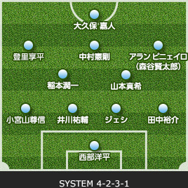 | GK/杉山 力裕 | 1 | 0 | SUB | 0 | 1 | GK/武田 洋平 | ||||