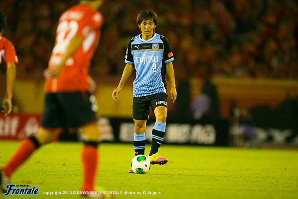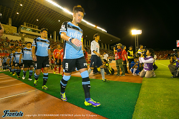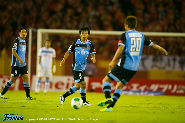 - 今日はうちの入り方が良くなかったし、相手も連敗中ということで最初から勢いを出してきて、すぐにゴール前に来られてしまう場面が多かった。ただ、そこで落ち着いて抑えることができたし、いい時間帯でヨシトさん(大久保嘉人)が点を取ってくれた。内容は良くなかったがいい形で折り返せたし、相手のサイドバックが上がって前がかりに来ていたので、うちとしては後半カウンターを狙っていた。自分も含めてチャンスがあったし、何度か決定機があった。そこで決めていれば最後の失点はなかったと思う。ただ相手がロングボールを蹴ってきて、そういう展開でも間延びせず、全員がさぼらずにハードワークをしていた。ケンゴさん(中村憲剛)やレナトがいるときとは違う形になったかもしれないが、どちらが先に崩れるかという流れでみんなで踏ん張ることができた。