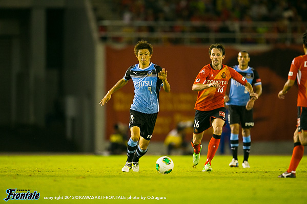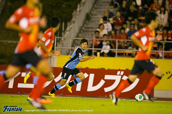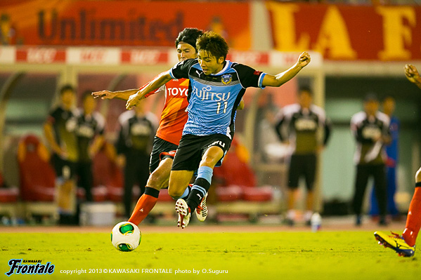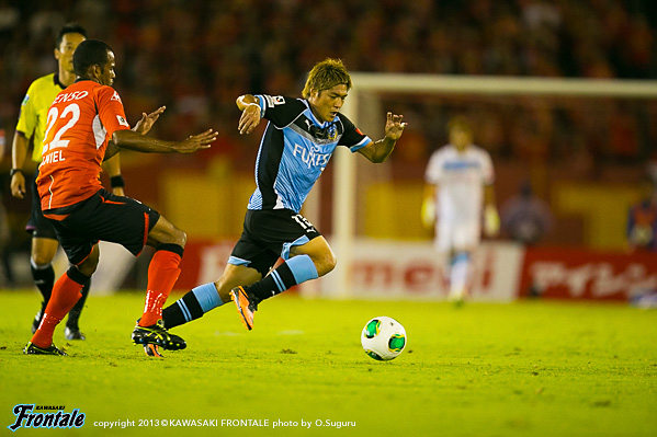 - きつかった。内容的にもきつかった。前半とか、守備で走らされていてそれがきつくてなかなか攻撃に力を出せなかったのはある。ヨシトさん(大久保嘉人)が1.5列目に下がった時に当てられたし、そのへんはいつもみたいにポンポンやれればよかったが、ちょっと相手の勢いに飲まれたところがあって、自分たちでやろうとしなかった。それで相手を勢いに乗せてしまった。だからこそ、やりようはもっとあった。もしダメでも途中で流れを変えられたりできればよかったが、なかなか変えられなかった。ただ、こういう試合を勝ちに持って行けたのは大きい。あれだけ打たれても失点しなかったのもラッキーだったが、できれば無失点で終わりたかった。2点目、アシストにはならないと思うが、マサキ(山本真希)からもらって自分で行こうと思ったが、足に上手く付かなくて、ドリブルでミスってしまって、でも取られたけどすぐに切り替えてマイボールにして、シュートを打とうと思ったが角度がなくて、相手も滑ったりしていて、ちょっと動きを待とうかと思ってやった。自分のモノにはできなかったが、賢太郎(森谷賢太郎)が上手く決めてくれてよかった。今日は勝てたことがすべてだし、レナトと憲剛さん(中村憲剛)がいなくて、なんか内容どうこうではなくて、結果だったと思っていた。最後上につながると思う。