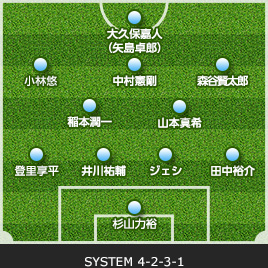 | 杉山 力裕 | 1 | 0 | 0 | 0 | GK | 0 | 0 | 0 | 1 | 楢﨑 正剛 |