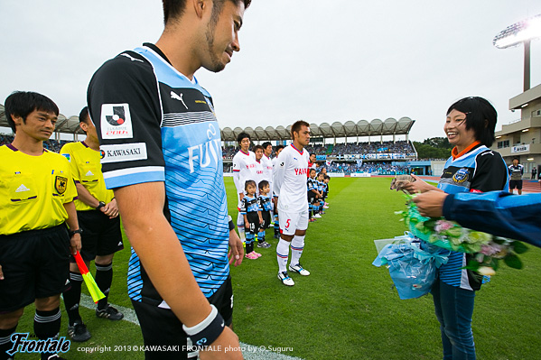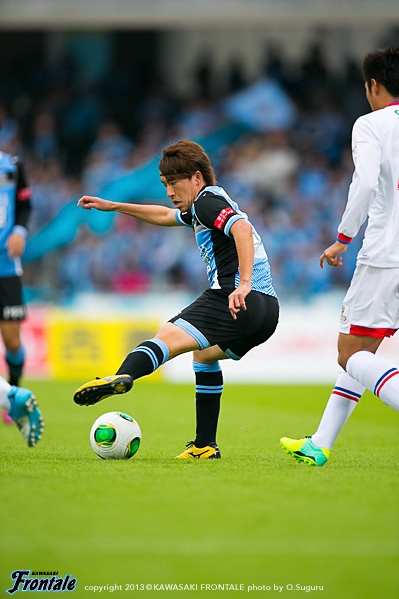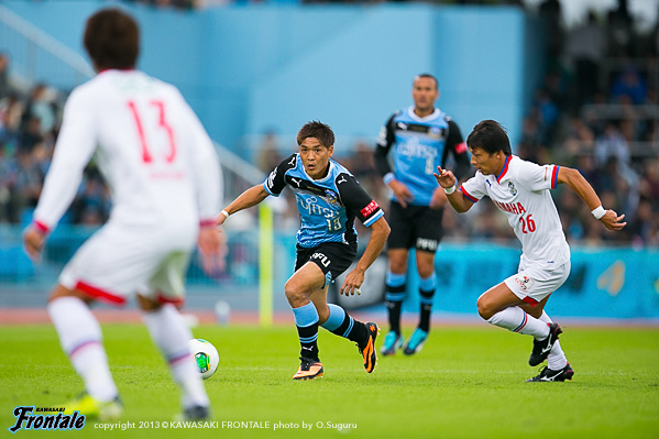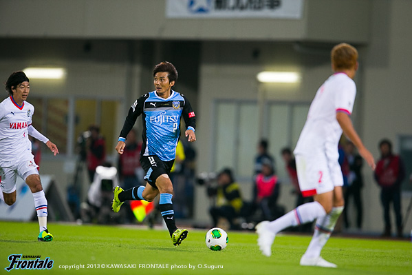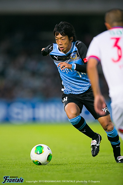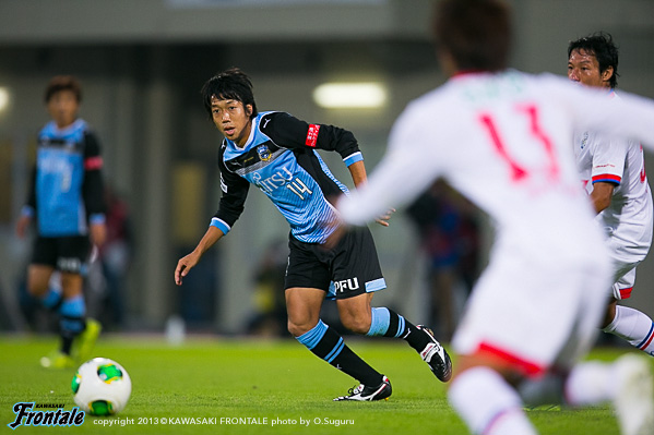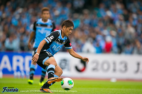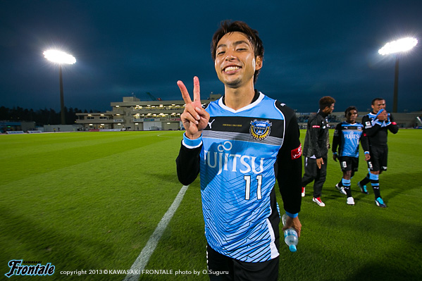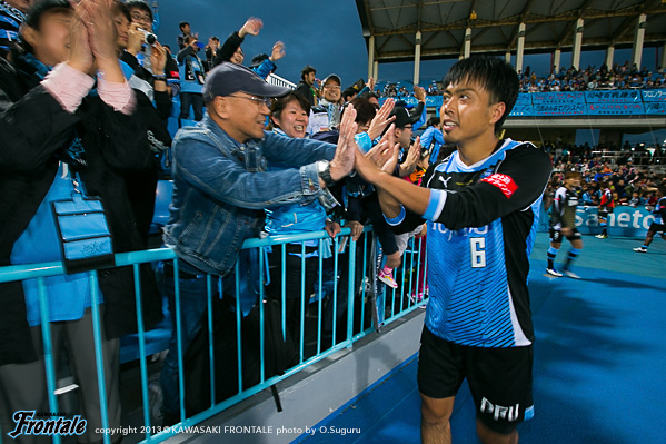 - 落ち着いてやれていたと思うし、フロンターレらしさも出せていた。ただ欲を言えば、もっと早く点を取りたかった。チャンスを作っていたので手応えはあったが、カウンターで失点してしまった。ただ失点してからも落ち着いていたと思う。ナビスコで負けたときよりも、みんなが冷静に試合を進めたことがこういう結果につながったと思っている。中盤では、ヨシトさん(大久保嘉人)を前でプレーさせること、僕とイナさん(稲本潤一)は普段通りやれればと思っていた。僕がしっかりとボールを受けないと何も始まらない。できるだけボールを受けてテンポを作れれば、と思っていた。守備のときには、イナさんが一人だとどうしても横のスペースを狙われてしまう。そこのカバーをヨシトさんが下りてするよりは、僕がしたほうがチームにとってはいい。そこの関係はできていた。最後は、等々力のあの雰囲気が逆転させてくれた。本当にいつも感謝してる。