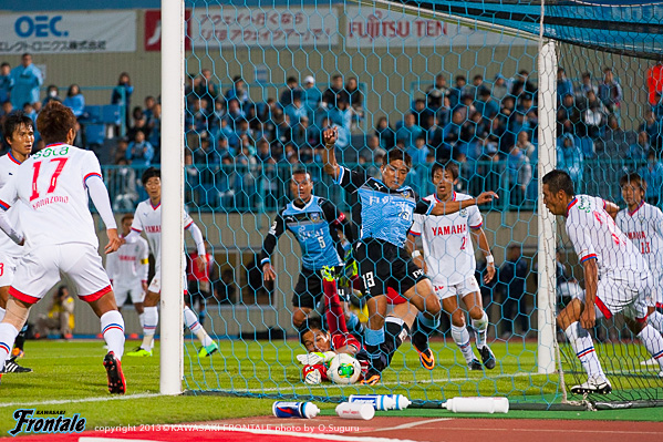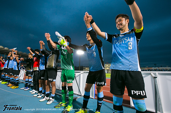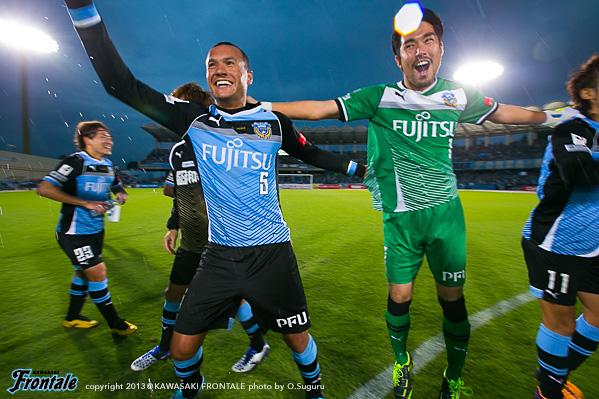 後半もフロンターレが押し込むものの試合が動かず。するとカウンターから失点を喫し嫌なムードが漂うが、終盤コーナーキックからジェシが同点ゴールを決めると、試合終了間際に中村のフリーキックから大久保が勝ち越し弾。劇的な展開で勝利を挙げた。