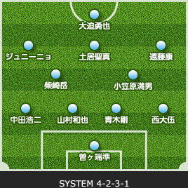 | 杉山 力裕 | 1 | 0 | 0 | 0 | GK | 0 | 0 | 0 | 21 | 曽ヶ端 準 |