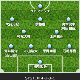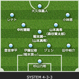 | GK/杉山 力裕 | 1 | 0 | SUB | 0 | 36 | GK/三浦 雄也 | ||||