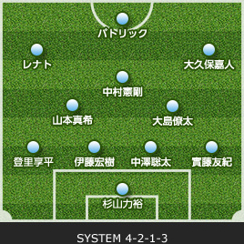 | 杉山 力裕 | 1 | 0 | 0 | 0 | GK | 0 | 0 | 0 | 21 | 櫛引 政敏 |
