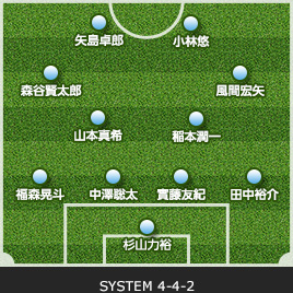 | 田中 裕介 | 3 | 0 | 2 | 2 | DF | 1 | 1 | 0 | 25 | 荒堀 謙次 |