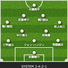 | GK/西部 洋平 | 21 | 0 | SUB | 0 | 1 | GK/阿部 伸行 | ||||