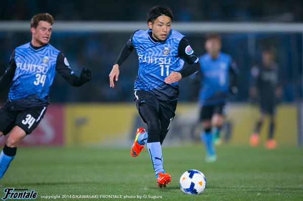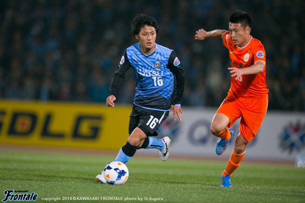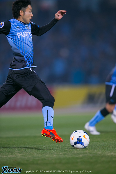 - もっと点が取れた試合だったと思う。そのためには、中盤の選手がもっと攻撃に顔を出さないといけなかった。今日は後ろからのビルドアップに意識がいきすぎて、中盤から前に入っていくタイミングがあまり掴めなかった。相手は思ったよりも球際に来なかったのでやりやすい相手だったが、前にパスを入れることであったり、崩し方に工夫していかないといけない。後ろからのビルドアップのときに、ケンゴさん(中村憲剛)が下がってこないようにしていきたい。ケンゴさんが下がってくれば3人でボールは回せるが、そうなるとヨシトさん(大久保嘉人)との距離が空いて孤立してしまうので、そこは改善しないといきたい。最後の方は足がつっていたが、90分通してプレーができたことはよかったと思う。90分通じて良いプレーをしていきたい。