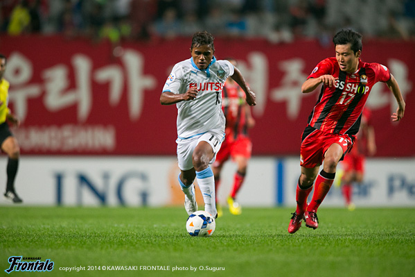フロンターレのスターティングメンバーは、大久保と小林の2トップ、中盤左にレナト、右に森谷、ボランチは中村と大島のコンビ、最終ラインは谷口-中澤-ジェシ-田中裕、GK西部。立ち上がり1分、フロンターレの攻撃。中盤から中村がゴール前にボールを入れるがクリアされる。2分、パスをつないで中央突破を狙うが、小林はオフサイドの判定。3分、FCソウルの攻撃。右サイド裏に抜け出したチャ ドゥリのクロスをエスクデロに合わせられるが、このシュートはGK西部がセーブ。4分、フロンターレの攻撃。レナトが左サイドからドリブルで切れ込むがDFにクリアされる。5分、大島の縦パスからダイレクトでボールがつながり、小林のラストパスに森谷が抜け出すがシュートは枠を外れる。7分、FCソウルの攻撃。ボールを奪い返されカウンターを狙われるが田中裕が対応。8分、右へのサイドチェンジをエスクデロにヘッドで流されるが、中澤がスライディングでクリア。さらにゴール前で攻勢をかけられエスクデロにシュートを打たれるが、GK西部がセーブ。迎えた9分、FCソウルの攻撃。さらに攻勢をかけられチェ ヒョンテに左サイドから入り込まれ、戻しを受けたエスクデロにシュートを決められ先制点を奪われる。(0-1)10分、FCソウルの攻撃。右サイド裏から抜け出したコ ヨハンにクロスを入れられるがジェシが対応。11分、フロンターレの攻撃。ジェシが中盤からスルーパスを入れるが、抜け出した小林は惜しくもオフサイドの判定。13分、パスをつないで押し込むがラストパスに持ち込めず。14分、中村が裏のスペースに浮かし球を入れるが小林には合わず。16分、左サイドから崩しを狙い、谷口からの戻しを受けた中村が浮かし球を入れるが森谷には合わず。20分、パスをつないで押し込むもののラストパスにつながらず。20分、FCソウルの攻撃。直後にカウンターを狙われるが中澤がインターセプト。21分、フロンターレの攻撃。大島が中盤から強引にミドルシュートを狙うが枠を外れる。22分、ボールをつないで押し込むものの、ソウルのディフェンスを崩せず。23分、FCソウルの攻撃。右サイドのチャ ドゥリのドリブル突破から押し込まれ、パスをつながれユン イルロクにシュートを打たれるが大きく外れる。