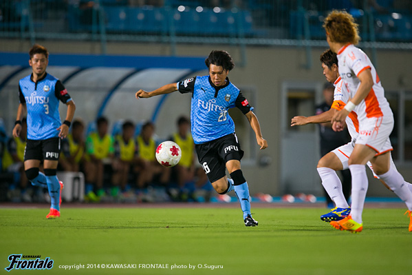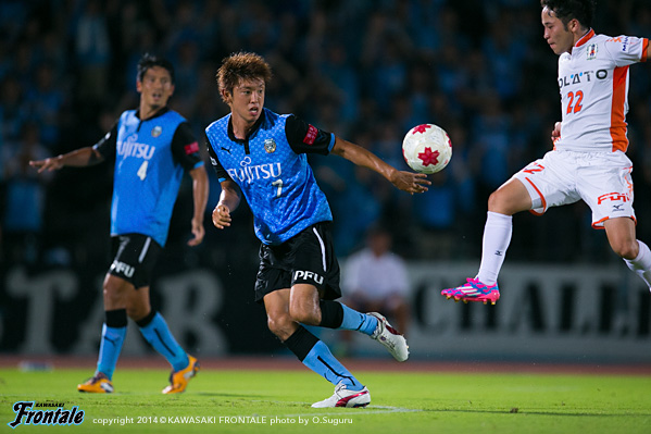 - 相手を押し込んでいても、あれだけ真ん中に人数をかけて守られると、どうしてもサイドからしか崩せない。あの状況で真ん中を通すのは難しいし、縦に入っても自分の周りに相手がたくさんいたので、ペナルティの3辺のうち、真ん中を崩すのは厳しかったと思う。リョウタ(大島僚太)が入ったのでボールが回ったが、最後のボールがズレてしまうことが何度かあった。ジュン(金久保順)も内側で勝負したいタイプだし、どうしてもサイドが高い位置を取ってセンタリングを上げるしかなくなった。ただそうなると、ウチのサッカーではなくなってしまう難しさもあった。すぐに次の試合があるので、そこに向けてしっかり準備したい。
