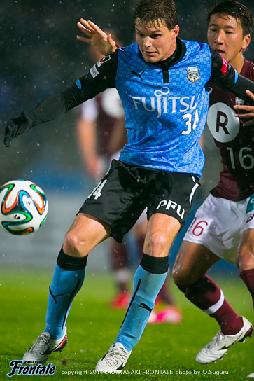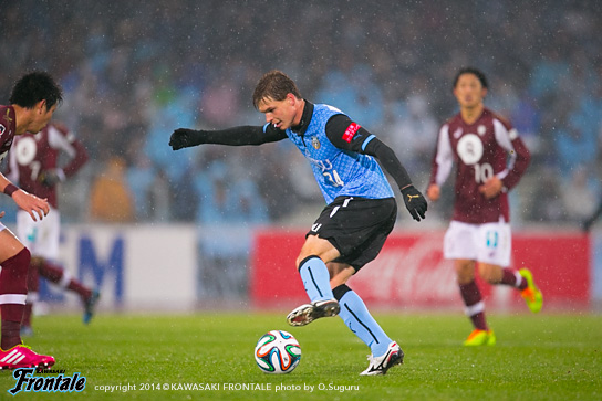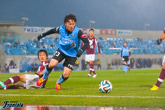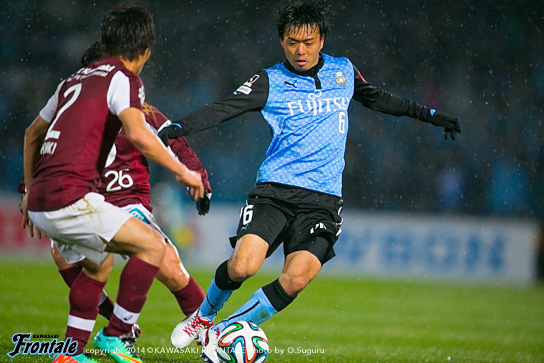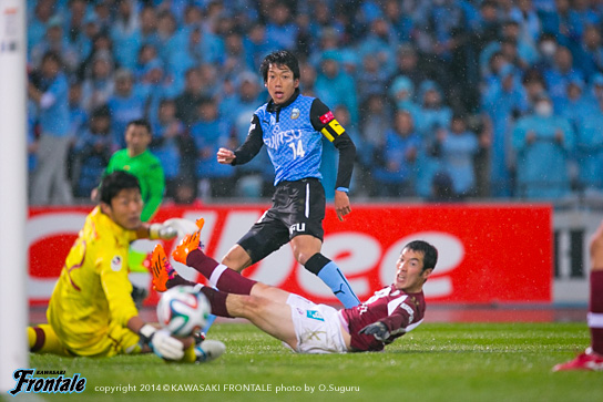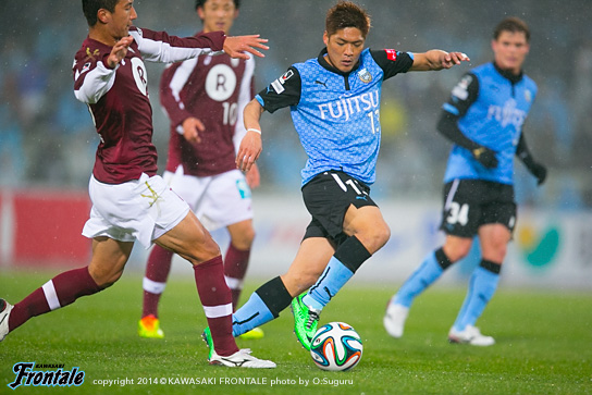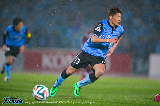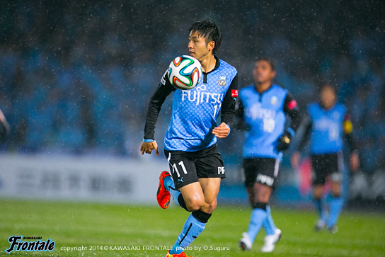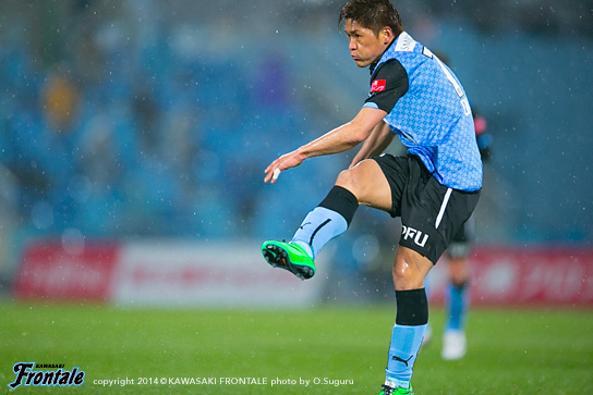 - ゴールは、ユウ(小林悠)がいいランニングをしてくれて自分のところにスペースが出来て、ヨシト(大久保嘉人)もそこにちょうどいいボールをくれたので、決めるだけというか、わりと冷静に。相手もいなかったので。ポストに当たったが、ゴールはゴールなので。あれが決勝ゴールなり、チームを勝たせるゴールだったら嬉しかったが、こういう展開になったので悔さ半分、嬉しさ半分。体力的なところはあるといえばあるかもしれない。中3日なので。でもそれでも全く崩せてないわけではないので、そこは自分たちがやること。疲れていても丁寧にやるということ。合わせることもそうだし、技術もそう。ちょっとミスが続いていたら、一度ペースダウンすることも必要。そういうコントロールというのをもっとチーム全体でできないと。やっていたが、最後のところのツメが甘かったように思う。最後キープでも良かったかもしれない。シュートで終わるんじゃなくて。そういうチーム全体の、守るなら思い切りクリアしてもいいし。小さくつなごうとして引っかかるということではなくて。そういう細かなことだが、相手ボールになっている。思い切り、割り切りも必要だったかと思う。