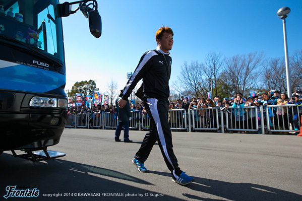 リーグ第3節、等々力に大宮を迎えての一戦。フロンターレはACLアウェイ蔚山戦から中2日という過密日程だが、ホームでJリーグ今季初勝利を挙げてチームに勢いをつけたい。晴天の等々力陸上競技場。15:03キックオフ。
