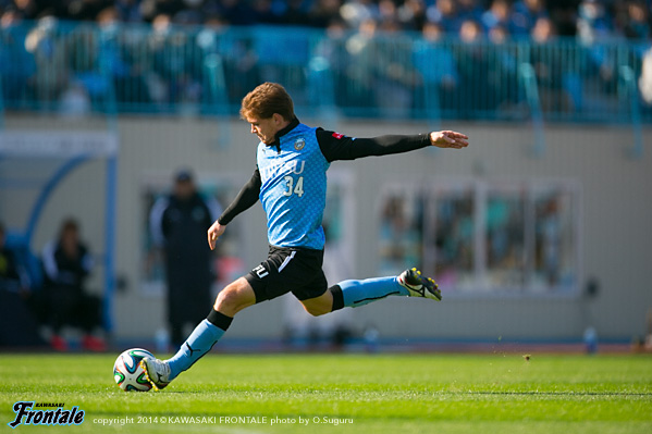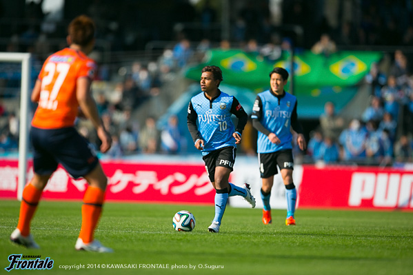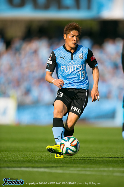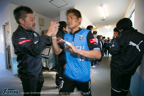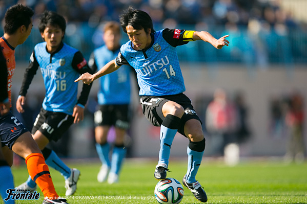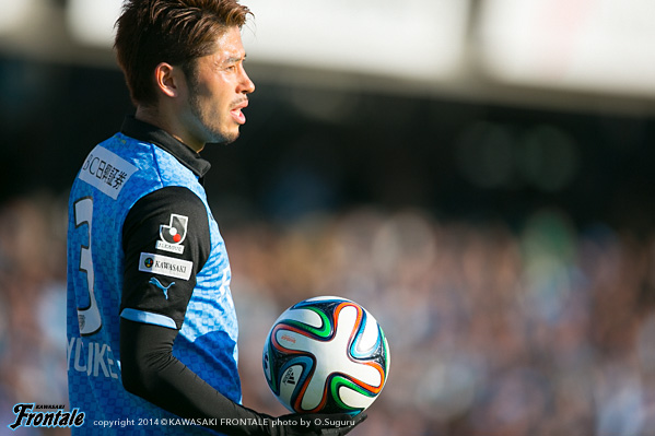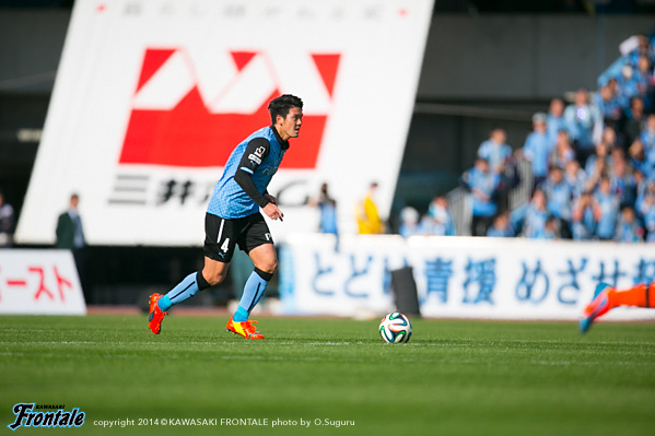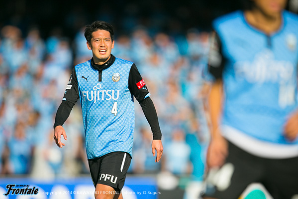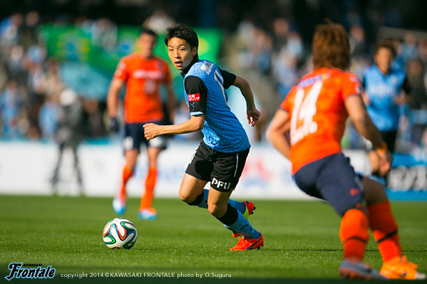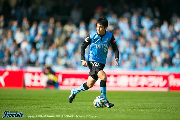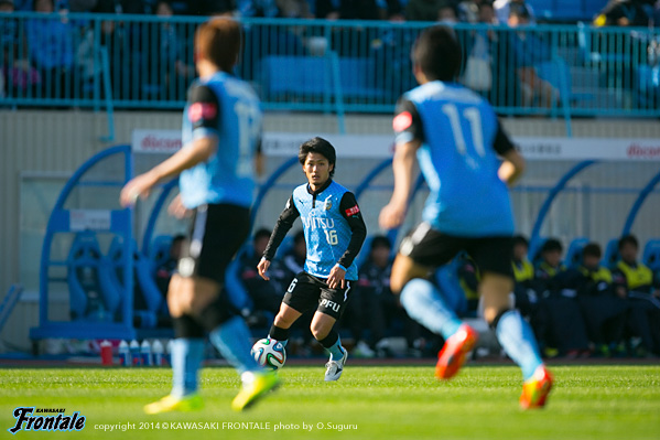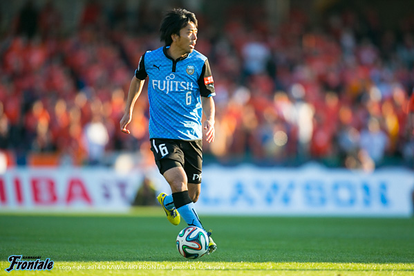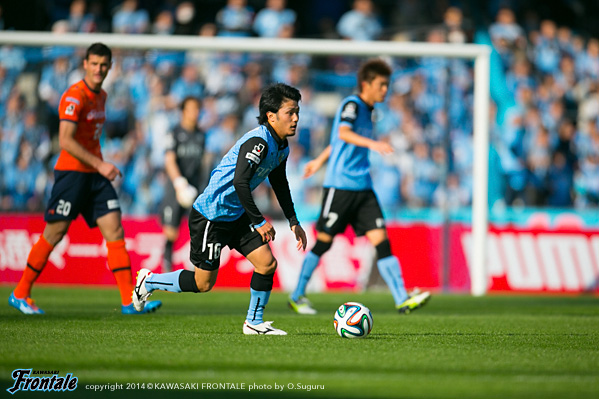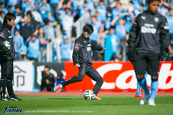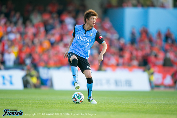- いや、そうではないですが、ひとつはかなりマークが厳しくなって、ACLでも付いてきていますし、少し下げてたくさんボールを触れる。リズムが出来ること。それからもうひとつは大島が非常に良くなってきているので、彼の動きを使いながらケンゴが上がってくる。それから後は小林悠がすごく動きが切れていますので、そういう意味ではヨシト(大久保嘉人)と前に二人並べたほうがより攻撃的に怖い形ができるんじゃないかと。ケンゴだけのことではなくて、チームの中の今の現状で後ろに置いています。決して守るためとか、リズムを作るためだけではないです。