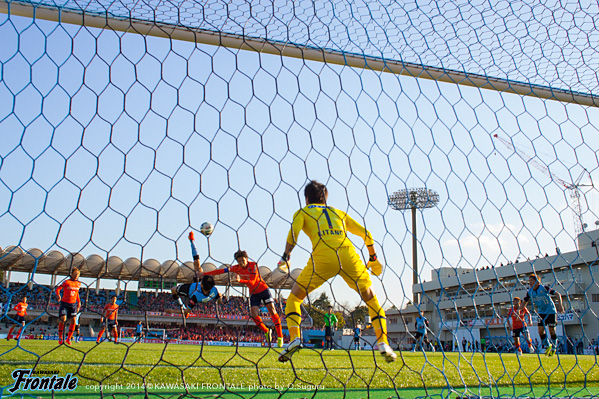フロンターレのスターティングメンバーは、2トップに大久保と小林、中盤左にレナト、右に大島、ボランチは中村とパウリーニョのコンビ、最終ラインは福森-井川-ジェシ-田中裕、GK杉山。3分、大宮の攻撃。カウンターから右サイドを突破され今井の低い折り返しをラドンチッチに合わせられるが、GK杉山が触りシュートはゴール右に外れる。迎えた4分、大宮の攻撃。右コーナーキックの場面で渡邉のボールをニアサイドで菊地にヘッド合わせられ、いきなり先制点を奪われる。(0-1) 8分、フロンターレの攻撃。右サイドでパスをつないで中村が左サイドへ展開。小林が切り返しながらシュートを放つが、これはゴール右に外れる。9分、大宮の攻撃。右サイドからのアーリークロスをラドンチッチに狙われるが、ヘッドはタイミングが合わず。10分、フロンターレの攻撃。ボールを奪い返して中村がキープ。パウリーニョがミドルシュートを放つがDFにブロックされる。11分、右サイドでパスをつなぎ、抜け出した中村が折り返すがゴール前には合わず。迎えた12分、フロンターレの攻撃。右サイドでパスをつなぎ、中村からボールを受けた田中裕がフリーで抜け出し折り返し。このボールが戻ってきたDFの足に当たり、ゴール。オウンゴールとなる。(1-1) 14分、フロンターレの攻撃。中村の縦パスを受けた大久保がミドルシュートを放つが、惜しくもゴール上に外れる。16分、大宮の攻撃。ロングボールから大宮に攻勢をかけられるが守備陣が対応。18分、パスを細かくつなぎ中央突破。大島の縦パスを小林がワンタッチで流すが、大久保には合わず。19分、大宮の攻撃。ラドンチッチにボールを入れられるが福森がカバーリングに入る。21分、フロンターレの攻撃。シュートブロックされたボールを拾い、田中裕が右サイドからクロス。こぼれ球を拾った福森が狙うが、ここもDFにブロックされる。23分、大宮の攻撃。右サイドから崩しを狙われるが中澤がカバーリング。25分、フロンターレの攻撃。中盤で大久保がカット。ドリブルをしかけパスを受けた小林がシュートを放つがDFにブロックされる。26分、フロンターレの攻撃。さらにボールを奪ってスルーパスに大久保が追いつくが、このシュートもブロックされる。