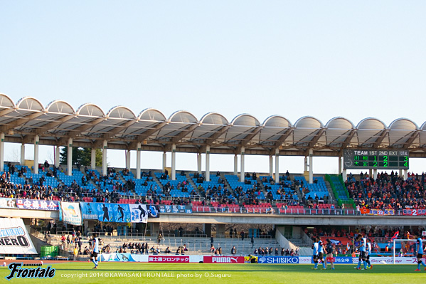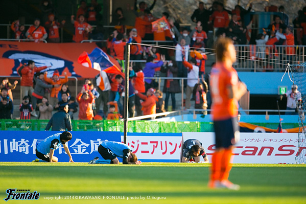 後半は川崎が一方的に押し込みながら得点を奪えない展開が続くが、70分にレナトのゴールで得点。さらに終盤、大久保が得点を決めて勝利に近づいたかに思われたが、セットプレーから同点に追いつかれ、さらにアディショナルタイムに失点。あと一歩というところでリーグ戦今季初勝利を逃してしまった。