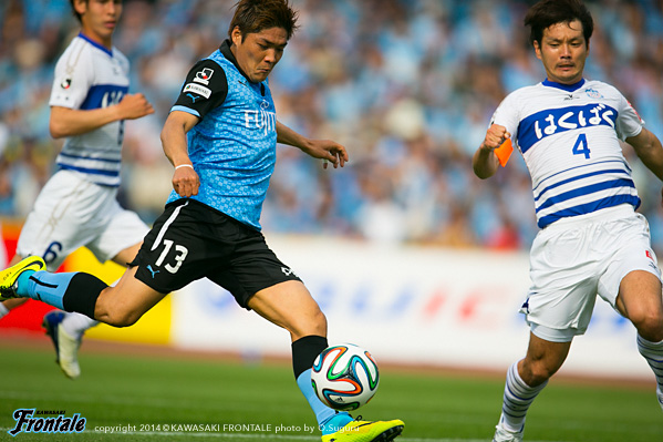 - なかなかゴール前まで行けなかったが、そういう相手とは何度も対戦している。じれずに90分続けようと思っていた。前半、自分たちはそれほど攻め急ぐつもりはなかったが、見ている人はモヤモヤしていたかもしれない。そういう中でも、自分は体力を使っていなかったので、特に後半の立ち上がりはドリブルで仕掛けようと思っていた。得点場面については、マサキくん(山本真希)が出してくれると信じていた。最初は、ユウくん(小林悠)に「スルー!」と声をかけたが、マサキくんに出た。自分はフリーだったし、マサキくんが良いパスを出してくれたので、落ち着いて決めることができた。ここ最近ミドルとかでシュートを打っていたので、そういうシュートを綺麗に決めたかったというのもあるが、自分はああいうゴールしか決めたことがない。どんな形のゴールだったとしても、ずっと皆さんが声をかけてくれ、期待をしてくださっているのがとても嬉しかったので、何としてでも結果で応えたかった。もっともっと結果を出してチームに貢献できるようにこれからも頑張っていきたい。チャンスは少なかったが、連戦なのでこういう勝ち方も必要だと思う。