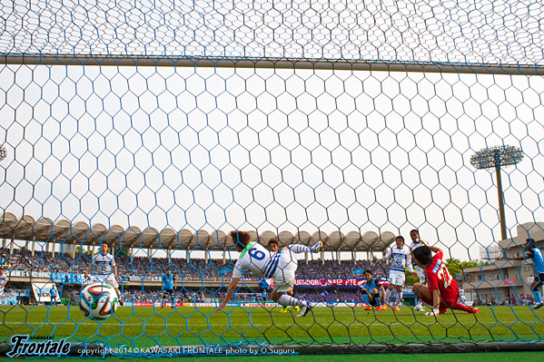 68分、甲府の攻撃。裏のスペースに抜け出したクリスティアーノに左サイドからクロスを入れられるが、谷口がファーサイドでクリア。69分、ペナルティエリア前のクリアミスから盛田にゴール前から決定的なシュートを打たれるが、ボールはクロスバーに当たって外れる。危ない場面だった。70分、セットプレーの流れから山本英にミドルシュートを打たれるが枠を外れる。71分、左サイドから回り込んだクリスティアーノのミドルシュートはゴール左に外れる。72分、左サイド阿部にクロスを入れられるがGK西部が触りしのぐ。73分、クリスティアーノのミドルシュートはGK西部が止める。75分、山本に代わりパウリーニョがピッチへ。77分、甲府の攻撃。右サイド稲垣のクロスは谷口がブロック。80分、中盤でボールを奪われる場面が続くが守備陣が辛抱強く対応。81分、フロンターレの攻撃。甲府の攻勢をしのいでカウンターへ。レナトがドリブルをしかけてスルーパスを受けた小林が折り返すが、大久保は惜しくもシュートに持ち込めず。82分、小林が甲府の選手と交錯。時計が止まる。84分、中盤センターからのフリーキックの場面。レナトのボールを右サイドでジェシが競り合うが折り返せず。86分、森谷に代えて森島がピッチへ。87分、甲府の攻撃。左サイド阿部のクロスはジェシがクリア。88分、マルキーニョス パラナに裏のスペースへの飛び出しを狙われるがジェシが対応。90分、甲府の攻撃。自陣でボールを奪い返されクリスティアーノにミドルシュートを打たれるが、GK西部ががっちりキャッチ。アディショナルタイム4分。90+2分、甲府の攻撃。中盤でボールを拾われジウシーニョにクロスを狙われるが中澤が足を出してブロック。90+3分、右サイドからのフリーキックの場面。ジウシーニョのボールは森島がヘッドでクリア。90+4分、左サイドからの折り返しをファーサイドで青山に折り返されるが、ゴール前には合わず。危ない場面だった。試合は2-0でタイムアップ。