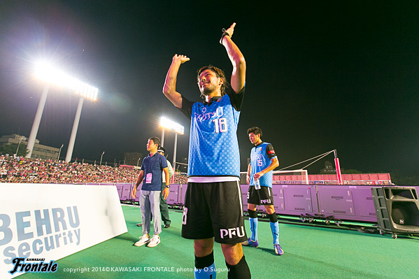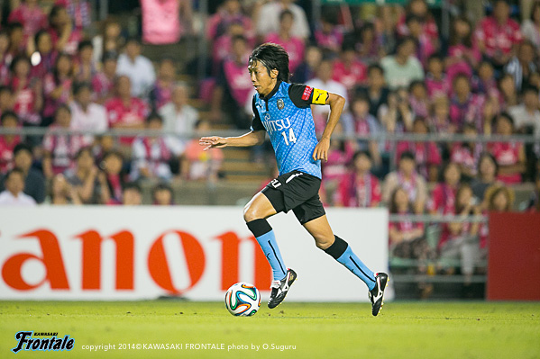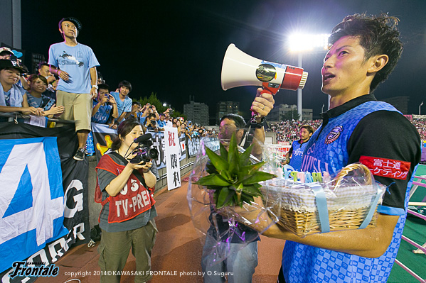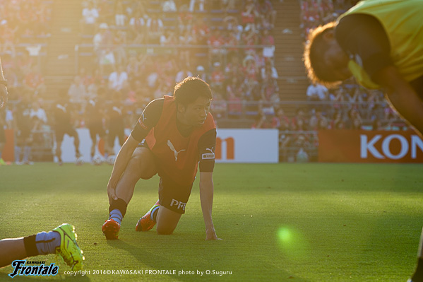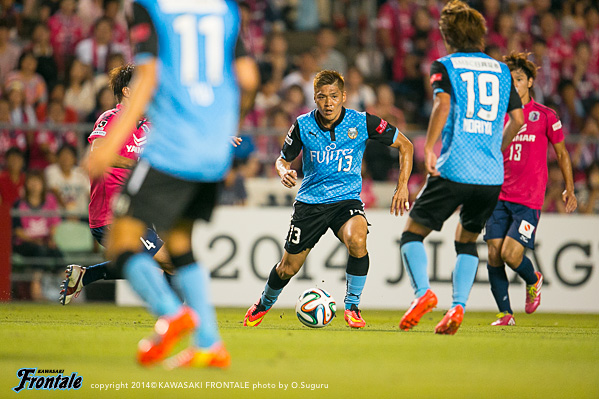 - 自分は天皇杯に出ていたのでそれほど違和感はなかったが、中断明け最初の試合ということで前半は全体的に体が重い感じで、動きも少なかったと思う。前と中盤、中盤と後ろの距離が遠い感じがしたし、ボールが入ってもフォローが少なかったかなと。そこはヨシトさん(大久保嘉人)と自分もそうだし、ケンゴさん(中村憲剛)とリョウタ(大島僚太)のところで縦関係でやろうと声を掛け合っていた。前半は相手にうまくやられたというところもあるが、後半は相手もバテてきてスペースができはじめ、自分たちのサッカーができるようになった。先制点を取られて慌てていたわけではないが、中断明けということで全体的に感覚が鈍っていたかもしれない。ただリキ(杉山力裕)が気持ちを出して2点目を取らせなかったし、後半は前線の選手がその思いに応えなきゃいけないと感じていた。