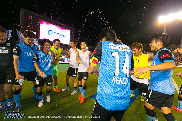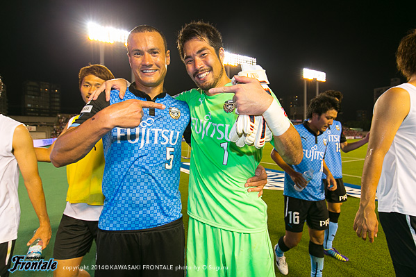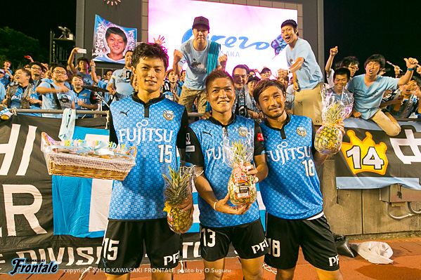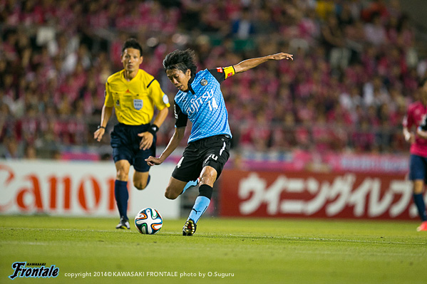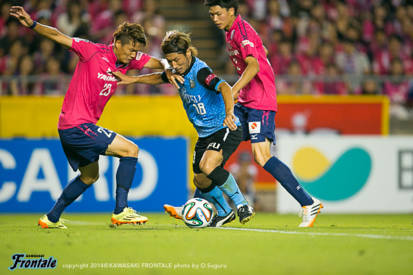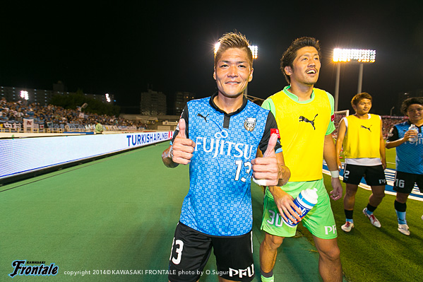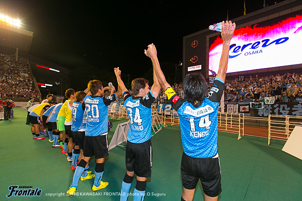 後半立ち上がりもC大阪の勢いを受ける形となるが、じょじょに相手の足が止まりはじめるとフロンターレが反撃。小林がPKを獲得してこれを大久保が決めて同点に追いつくと、途中出場の金久保がフロンターレ初ゴールを決めて勝ち越し。厳しいアウェイゲームで逆転勝利を収めた。
