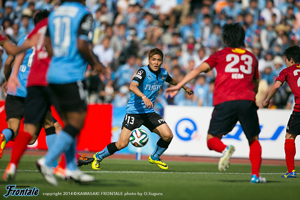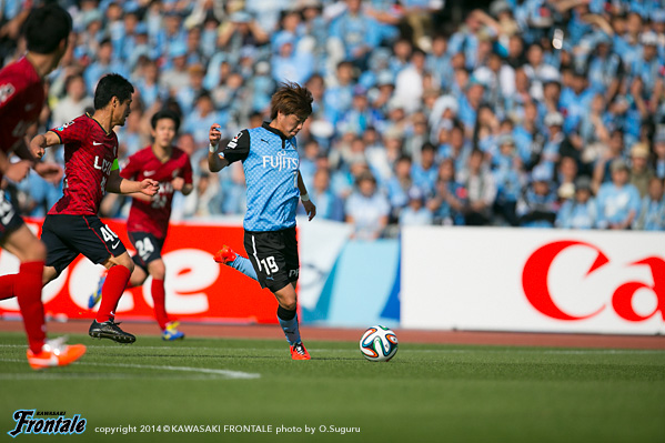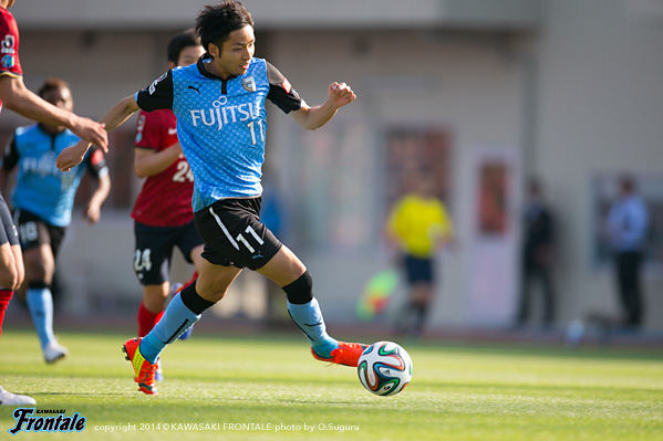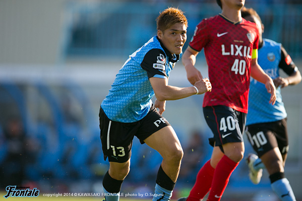 - みんな疲れがあるので、早い時間帯に点を取って自分たちの流れにしたかった。その中で、チャンスがあればどんどん前に絡んでいこうと思っていた。相手は前から奪いに来たが、やりにくくはなかったし、やっていても楽しかった。相手のボランチが出てくるので、ユウさん(小林悠)とヨシトさん(大久保嘉人)のところにボールも入れやすかった。そこでもっとうまく中盤でも崩せれば良かった。後半は、相手が中盤の人数が多くなってきて押し込まれたが、最後で味方が身体を張ってくれた。その奪ったボールを、ユウさんからヨシトさんに出してカウンターを出すことができた。今日の試合、ケンゴさんやヨシトさんの気合いというのは感じた。でもだからといって、それが空回りするのではないし、普段通りにやってくれていた。そのことで、むしろ自分たちがもっとやらないといけないと感じたほどだった。