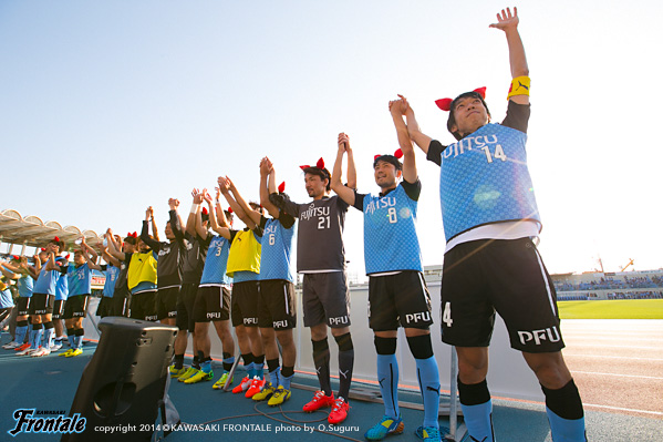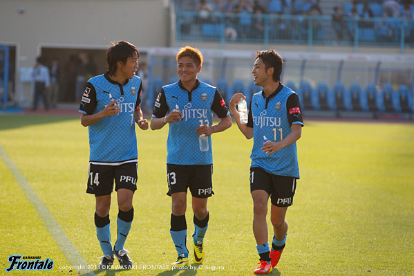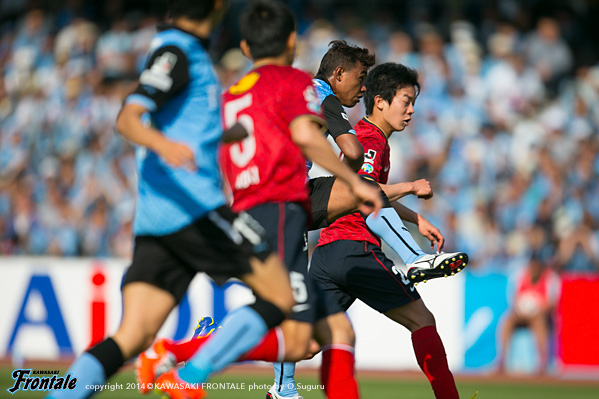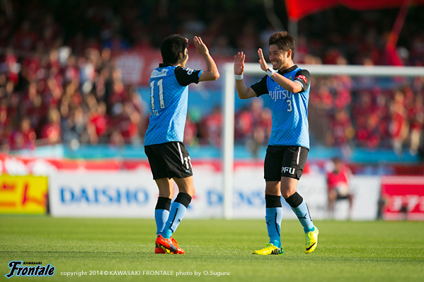 後半立ち上がりに鹿島に攻勢をかけられるものの辛抱強くしのぎ、小林のゴールで勝ち越し。さらに終盤、大久保が2ゴール。相手の前に出る勢いをうまく利用したカウンターで追加点を奪い、等々力で勝点3を手にした。