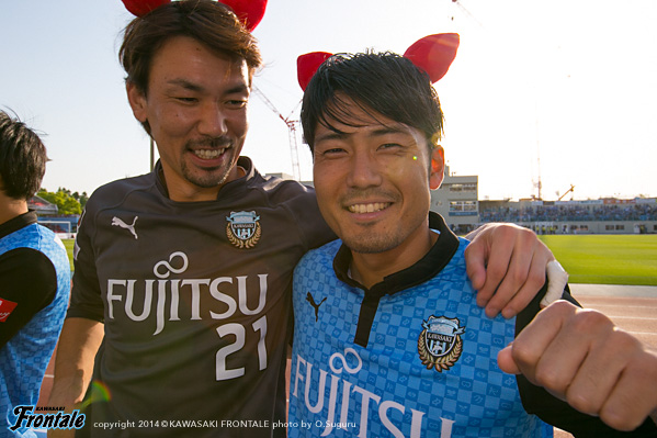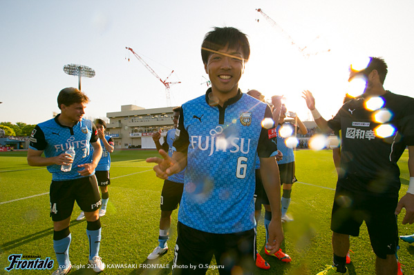 - FCソウル戦のあとの試合ということで、個人的にも強い気持ちを持って入った。チームのリズムを作るためにも、プレーをはっきりさせることを心がけた。すぐ試合が来たので逆に切り替えることができた。後半は中盤でボールを持てない時間帯があって、後ろも押し上げられず、前の選手が孤立する場面があった。ただ、厳しい時間帯でも相手にやらせないということをみんなで意識していて、必ずカウンターのチャンスが来ると声を掛けあっていた。ユウ(小林悠)が早い時間帯に2点目を取ってくれたし、チームとして我慢できたことがヨシト(大久保嘉人)の追加点につながった。2トップが決めて勝つというのはチームとしても大きい。次はACLのアウェイゲーム。FCソウル戦の借りはFCソウル戦で返さなければいけない。2点差で勝つという条件だが、3点取ればいいわけだし、十分可能性はあると思っている。どういう展開になるかはわからないが、アウェイで勝っていい結果を日本に届けたい。