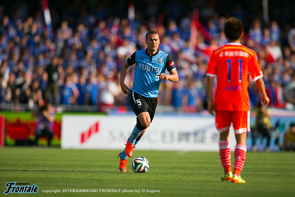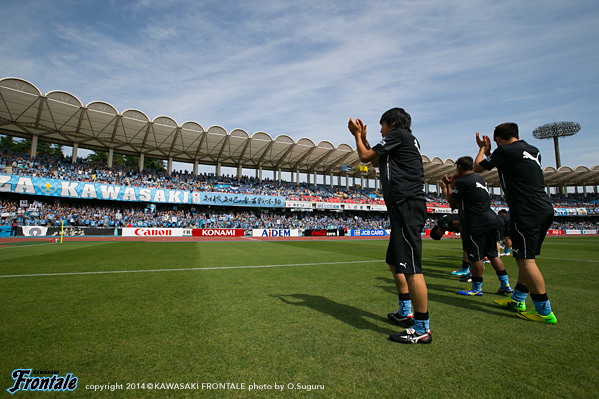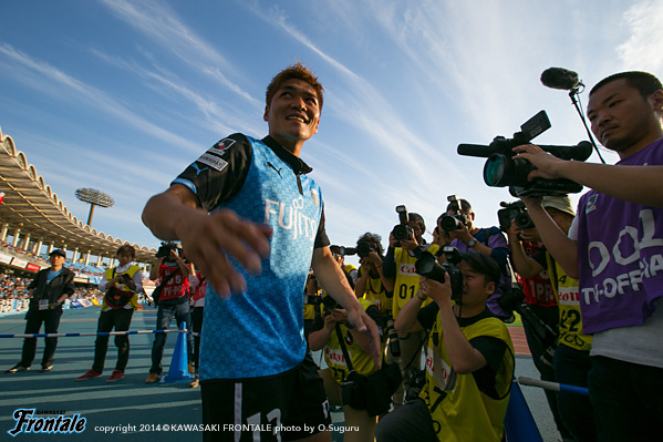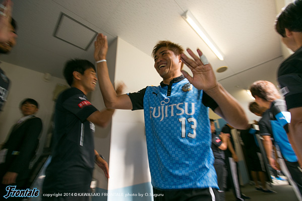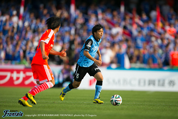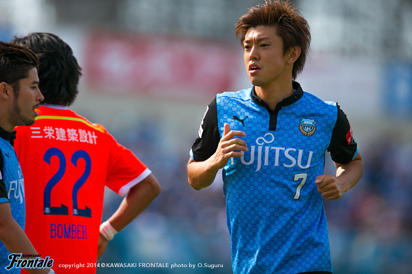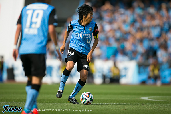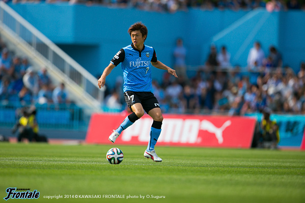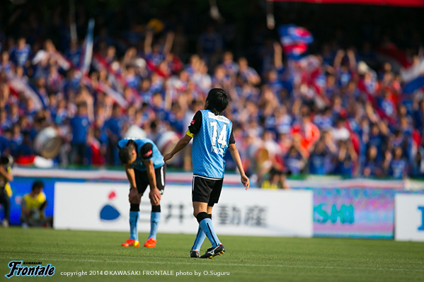 - ここ数試合に比べると、自分がボールを持ったときに顔を出す人と動き出す人が少なかった。いつもならば、複数の選手が顔を出す場面だったので、やはりそこは連戦もありキツかったと思う。自分もパスを出せる場所がないまま、ボールを奪われてしまうことがあった。そういう意味での運動量が全体的に足りなかった。相手のプレスの強度は、前節の鹿島とそれほど変わらない。こっちの頭の中でプレッシャーを受けていると思ってしまい、そうなると動きがなくなる。ウチは、そこを複数人で動くことでかわしてきたチーム。前半のレナトの1対1の場面もそうだが、勝っている試合はそこで決めて試合を優位にすすめていた。いつものイメージでリョウタ(大島僚太)とパス交換しながら相手の間を狙いたかったが、そのイメージ通りにボールを運べなかった。今日はアップに入ったときに、サポーターがあんな横断幕を用意してくれた。本来ならばヨシト(大久保嘉人)が先だと思っている。本当にありがたいと思ったし、その思いに応えたかっただけに、この結果と内容は本当にショック。ずっとACLとの並行でやってきて、考えられないぐらいの連戦だったが、その中でも自信を持ってスタイルを確立できた。ただもっとタフにならないと戦っていけない。それは出ている選手だけではなく、途中から出る選手もそうだし、今ベンチ外の選手もそう。中断期間があるので、一回しっかり休んで、もっとみんなで高めていきたい。