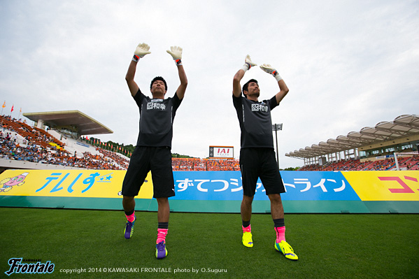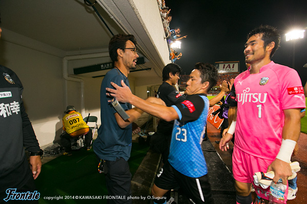 - エスパルスもそうだし、前節のセレッソもそうだが、中を固めて外に出させてはめるという基本中の基本をやっているので、そうなるとこっちは回して逆の立場だったら走らされて嫌になる。それを90分持てば怖いチームになるし、ただ、持たないというのは見える。前半は点を取られようが大丈夫。後半になれば逆転できるしフロンターレはほぼ点が入るので。取れるかなという。いいよ、という、みんなに自信がある。自信を持ってやれているところがある。どんな悪いゲームをしても勝てるようになってきている。それはチーム力が上がってきているということだと思う。ゴールは、ポストに当たるかなと思ったが、スリッピーだったので当たってこっちにくればいいなと。そのまま入るのが一番だが、入らなくてもこっちに来いと思っていたら、来たので。こっちもスピードを上げすぎて、足元に来てしまって。体ごと当てた。予測。予測しているので。来なかったら来なくてもいいし、来る来ると思いながら待っていた。来た瞬間早く反応できるしね。