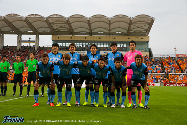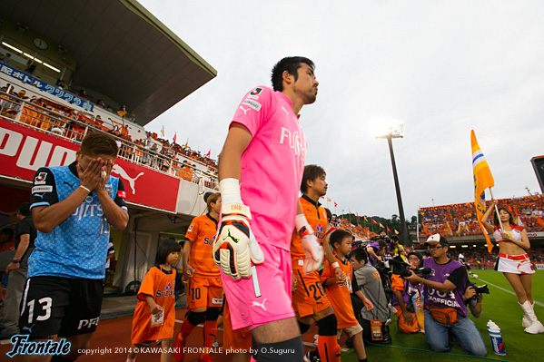 フロンターレのスターティングメンバーは、大久保と小林の2トップ、中盤左に金久保、右に森谷、ボランチは中村と大島のコンビ、最終ラインは登里-谷口-實藤-小宮山、GK杉山。立ち上がり1分、清水の攻撃。高木俊の右コーナーキックは中村がクリア。セカンドボールを拾われるが、中村が対応。3分、中盤やや右サイドからのフリーキックの場面。吉田のボールは守備陣がかきだす。4分、左サイドからクロスを入れられるが大島がクリア。こぼれ球はGK杉山がパンチングでしのぐ。4分、さらにセカンドボールを拾われ押し込まれるが、守備陣が対応。中盤でボールを奪われる場面が続く。9分、フロンターレの攻撃。大島がドリブル突破からスルーパス。左サイドの金久保が折り返しを入れるがクリアされる。10分、中村のワンタッチパスから抜け出した登里が左サイドからドリブルで切れ込み鋭いボールを入れるが、DFに当たって外れる。11分、森谷とのパス交換から右サイドの小林が抜け出しを狙うがクリアされる。12分、大久保のスルーパスは金久保には通らず。12分、清水の攻撃。左サイドから切れ込んだ高木俊のシュートはDFに当たってコースが変わるが、クロスバーに当たって外れる。危ない場面だった。13分、高木俊の右コーナーキックは登里がクリア。17分、フロンターレの攻撃。自陣から中村がロングボールを入れ、裏のスペースに小林が走り込むがDFにクリアされる。18分、大島が中盤から長いボールを入れるが、大久保はオフサイドの判定。19分、ボールを細かくつないで押し込むがフィニッシュにはつながらず。20分、パスをつないで森谷がラストパスを入れ、金久保がペナルティエリア内でDFともつれて倒れるがノーファールの判定。22分、清水の攻撃。中盤センターからのフリーキックの場面。大前のシュートは大きく外れる。24分、フロンターレの攻撃。清水の攻勢をしのいでカウンターを狙うが、ラストパスにつながらず。27分、パスをつなぎ大久保が縦パスを受けるがフィニッシュに持ち込めず。