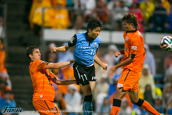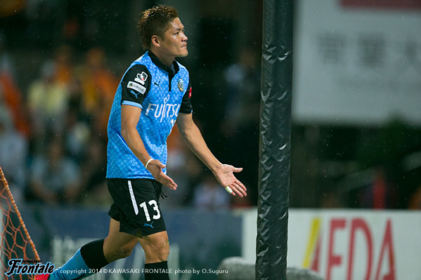 - 前半は、相手のDFにそこまでスピードがあるわけではないので、もう少し裏のスペースにボールが欲しかった。自分とヨシトさん(大久保嘉人)なら裏に蹴って、よーい、ドンでも良い勝負ができると思っていた。ただ、なかなか前にボールが入らず、ミスも多かった。ミスが多かったので、ボールを失いたくない意識からそういう展開になったのかもしれない。1点目は、クロスがあがってくるまで何度も動き直していた。まだか、まだかと思っていたが、ようやく思い通りのボールが来た。ここのスタジアムで自分はけっこう点を取っている。今日も取れるかな、と思っていた。2点目の場面は、ケンタロウ(森谷賢太郎)のパスがちょっとズレていたのとピッチがスリッピーだったこともあって、うまく転がすイメージだった。ただ、ああいうところに詰めているのがヨシトさん(大久保嘉人)。やっぱりヨシトさんはすごい。あれでチームも楽になったので大きい2点目だった。今日も、雨の中でたくさんのサポーターの応援が聞こえたし、しっかり勝って皆さんに笑って帰ってもらうことができて、本当に嬉しい。