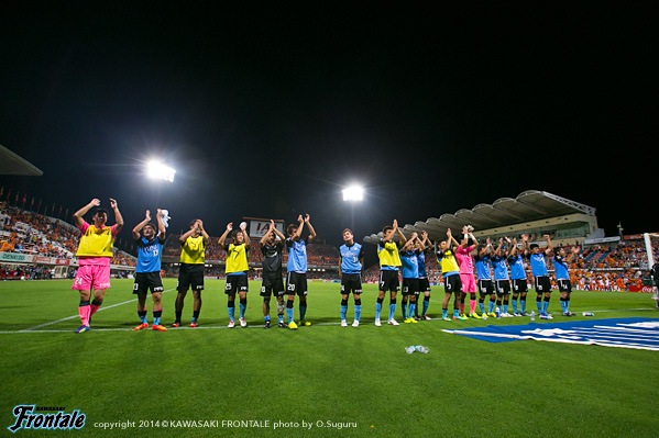 後半は立ち上がりからフロンターレのペース。じっくりパスをつなぎながら攻勢をかけ、小林のゴールで先制。さらに大久保が追加点を挙げ、その後は流れのなかでは清水に決定的なチャンスを作らせず、アウェイゲームで連勝を果たした。