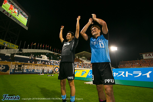 - 最初に相手の得意なプレーをさせてしまったので、自由にやらせちゃいけないと気が引き締まった。Bチームで練習することが多かったので、ボールを回されてきつくなっていくのは身をもって経験している。実際に後半に入って相手の運動量が落ちた。前半に失点ゼロで終わることができたので、後半必ずチャンスがあると思っていた。ユウ(小林悠)の先制点の場面は、しつこいぐらいにじっくりパスをつないでクロスに持っていった。相手に当たって絶妙のコースになったのでラッキーだった。個人的には体が動くようになってきたし、トップチームのスピードに慣れてきたという感覚はある。守備だけではなくてチャンスがあれば得点にも絡んでいきたい。今日は後ろの組み合わせが変わったが、サネ(實藤友紀)も能力が高いし、また違ったよさがある。不安はなかったし、相手に強くいってくれるので助けられた。後ろはボールを取られなければ守備をしなくてよくなるというのがうちの考え方だが、危ない場面はリキ(杉山力裕)がしっかり止めてくれた。今は集中して一体感をもって戦えている。アウェイで連勝できたのはよかったが、今日は今日で忘れて次の試合に向かって行きたい。