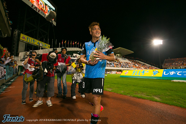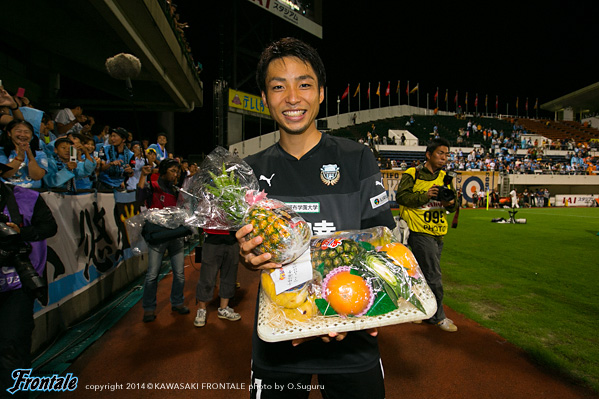 - サポーターの皆さんはもちろん、チームのスタッフ、チームメイト、いつも支えてくれる家族、両親に本当に感謝したい。次は200試合を目指して、これからもフロンターレでずっとやれるように頑張っていきたい。
