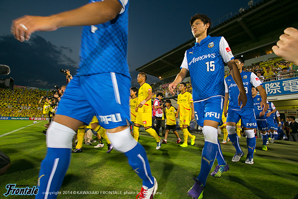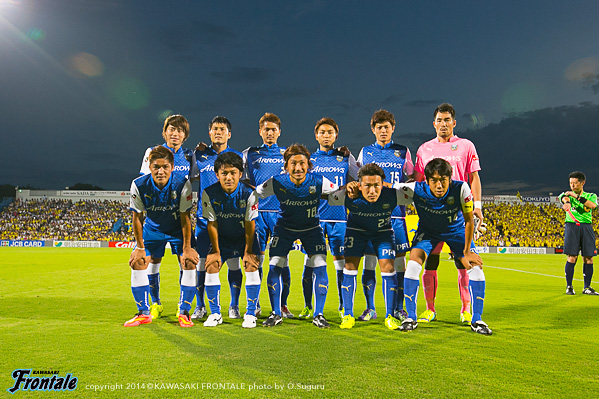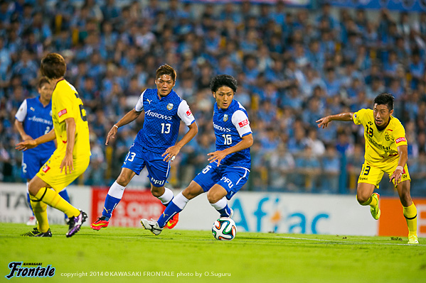 フロンターレのメンバーは大久保と小林の2トップ、中盤左に金久保、右に森谷、ボランチは中村と大島のコンビ、最終ラインは登里-谷口-實藤-小宮山、GK杉山。立ち上がり2分、フロンターレの攻撃。パスをつないで左サイド登里がドリブルをしかけてクロスを狙うが、DFにブロックされる。3分、中村の左コーナーキックをニアサイドで實藤が触るが、ボールは大きく外れる。4分、柏の攻撃。左サイドから崩しをかけられ高山にクロスを入れられるが守備陣がブロック。5分、フロンターレの攻撃。直後に反撃をかけ、右サイド小林の戻しを金久保が合わせるがシュートはうまくミートせず。7分、柏の攻撃。中盤右サイドからアーリークロスを入れられるがGK杉山がキャッチ。7分、フロンターレの攻撃。ボールをつないで中央突破を狙うがブロックされる。8分、柏の攻撃。直後にカウンターを狙われるが谷口が体を投げ出し対応。9分、ペナルティエリア前中央からのフリーキックの場面。秋野のシュートはゴール右に外れる。10分、自陣でボールを奪われカウンターを狙われ、左サイド橋本のクロスを高山にヘッドで合わせられるが大きく外れる。11分、右サイド藤田のミドルシュートは大きく外れる。11分、實藤が左肩を負傷。時計が止まる。ピッチ外へ。14分、實藤に代わりジェシがピッチへ。15分、柏の攻撃。左サイド橋本にクロスを入れられるが、ジェシが体でブロック。16分、秋野の左コーナーキックを増嶋にヘッドで合わせられるがGK杉山がキャッチ。16分、フロンターレの攻撃。直後に反撃を狙うが大久保はファールで止められる。17分、ペナルティエリア右前からのフリーキックの場面。中村のボールのこぼれ球に金久保が合わせるが、シュートは惜しくもクロスバーに当たって外れる。18分、柏の攻撃。ボールをつながれ裏のスペースを狙われるが、工藤にはジェシが対応。GK杉山がキャッチ。19分、フロンターレの攻撃。中村が中盤でパスカット。反撃を狙うが小林はファールで止められる。20分、中盤センターからのフリーキックの場面。中村の浮かし球はクリアされる。21分、柏の攻撃。藤田に右サイドからクロスを入れられるがジェシが対応。22分、フロンターレの攻撃。中央でパスをつないで崩しを狙うがクリアされる。