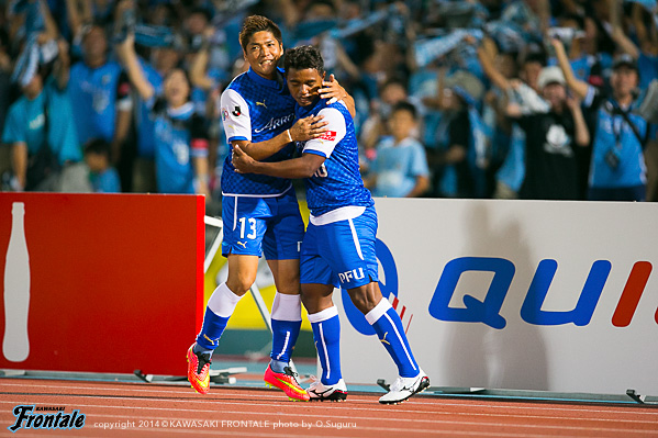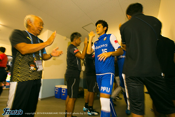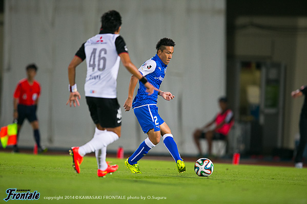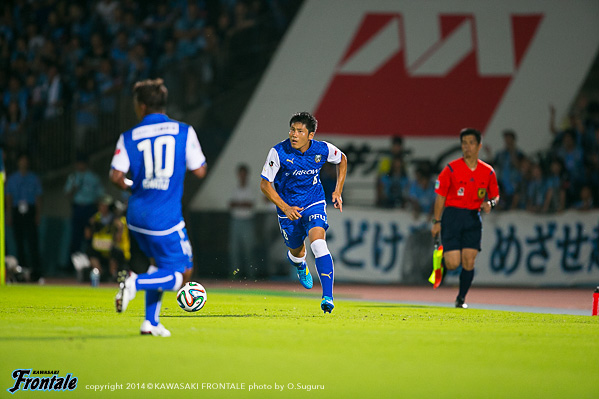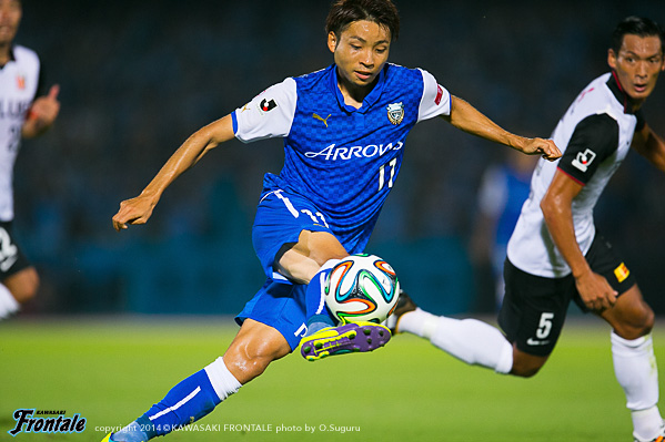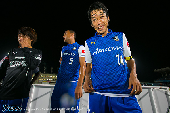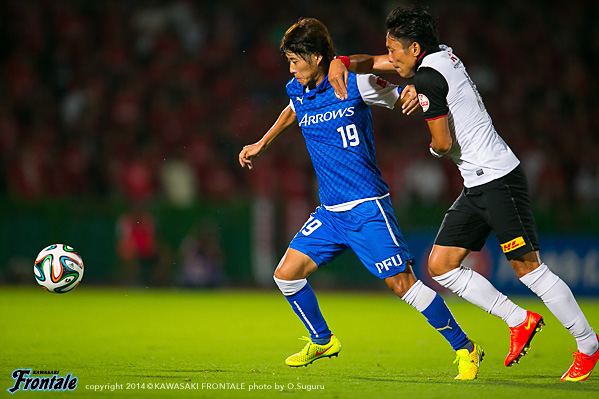 - いきなり失点してしまったがバタバタせずに冷静にプレーして、ケンタロウ(森谷賢太郎)がうまくゴール前に入ってくれた。今日はミラーゲームに近い形だったので、必然的に1対1の場面が多くなる。そうなるとレナトの良さが生きる。レナトがボールを運んでユウ(小林悠)が裏を狙うことでバイタルエリアが空く。そこにヨシトが入っていくという形ができた。ユウがオフサイドにならずにボールを受けられる場所にいたし、ヨシトも行き過ぎずにちゃんと止まっていた。相手も頑張っていたが体力的に後半落ちると思っていた。うまくカウンターにつなげることができていたので、そこで点を取れたら楽になっていたとは思うが。前半は自分たちの形に慣れるという感じだったが、相手はロングボールか、トップの選手にクサビのボールが入ってはたくという2択だった。うちとしてはカウンターを狙って、できなければボールを持つという試合運びだった。レナトとユウが守備のタスクをこなして、そこから走らせるという形ができていたと思う。浦和はシンゾウ(興梠慎三)のところがポイントなので、そこを潰せばボールを獲った瞬間、自分とリョウタ(大島僚太)がフリーになる。守備に関しては組織的に崩される場面はほぼなかったと思う。前節柏戦は悪い負け方だったが、次で勝てばその経験が生かされたということになる。そういう意味でも浦和に勝ったというのは大きい。自分としては最初からいい感触だったし、浦和が相手ということで楽しかった。