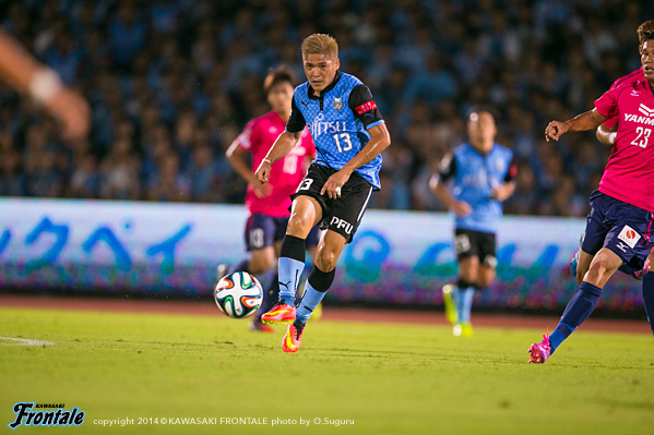 フロンターレのスターティングメンバーは、最前線に大久保、左にレナト、右に小林、中盤は登里-大島-中村-森谷、最終ラインは小宮山-谷口-實藤、GK杉山。4分、フロンターレの攻撃。パスをつないで右サイド實藤が裏のスペースへ浮かし球を入れるが、小林はオフサイドの判定。迎えた5分、C大阪の攻撃。左サイドから崩しをかけられ、丸橋のアーリークロスをファーサイドの南野にヘッドで押し込まれ先制点を奪われる。(0-1) 7分、フロンターレの攻撃。左サイドから崩しをかけ、レナトから横パスを受けた登里が左サイドからシュートを放つがうまくミートせず。9分、中盤でボールを奪い、レナトが左サイドをドリブル突破。クロスを入れるがDFにクリアされる。迎えた10分、フロンターレの攻撃。中盤でパスをつなぎ大久保が絶妙のスルーパスを入れ、右サイドからカットインした小林が左足でGKの股間を抜くシュートを決める。(1-1) 13分、フロンターレの攻撃。中盤中央から中村が縦パスを入れ、小林がトラップから反転を狙うがクリアされる。しかし迎えた13分、右コーナーキックの場面。レナトのボールに飛び込んだ大久保が合わせて追加点を奪う。(2-1) 16分、C大阪の攻撃。中央から崩しを狙われるが守備陣が対応。谷口がクリア。17分、中盤からのフリーキックの場面。丸橋のボールは守備陣が対応。19分、フロンターレの攻撃。パスをつないで左に流れた中村が低いボールを入れるが、DFにカットされる。22分、中盤でボールを奪い返してカウンターへ。大久保からパスを受けた小林が右サイドから切り返して左足で狙うが、惜しくも左ポストに当たって外れる。24分、中盤から中村がサイドチェンジ。レナトが追いつき左サイドからドリブルをしかけてファールを誘い、PKを獲得。26分、PKキッカーはレナト。落ち着いてPKをゴール左隅に決める。(3-1) 27分、C大阪の攻撃。右サイドから崩しを狙われるが、南野には登里が対応。28分、フロンターレの攻撃。中盤から中村がサイドチェンジ。このボールに反応したレナトが左サイドからダイレクトで狙うが、シュートは大きく外れる。30分、C大阪の攻撃。パスをつながれ押し込まれるが守備陣が対応。